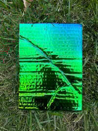 Silver deposit with urethane clear and candy color on poly primed, epoxy soaked, cardboard on plywood.